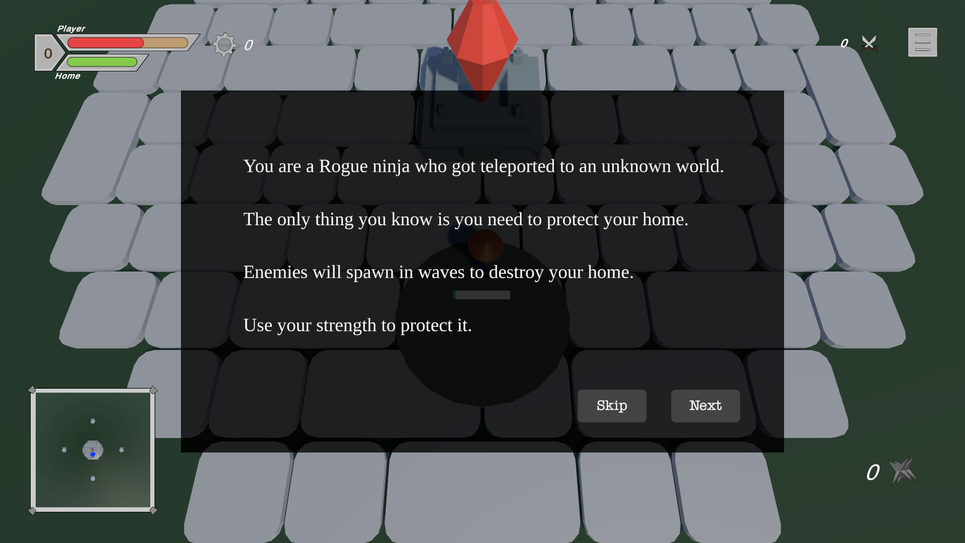 Rogue Blade is a top down wave type game where you need to protect your home from enemies. Each wave will have more number of enemies and player can buy blades and turrets to protect the home.